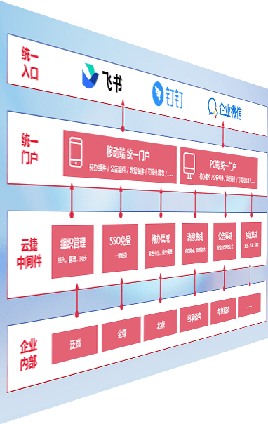 对协作平台提供支持服务,,支持企业应用与协作平台对接,,,包含组织同步、、、、消息集成、、待办集成等。。。。支持目前主流的协作平台:钉钉、、、、企微和飞书。。